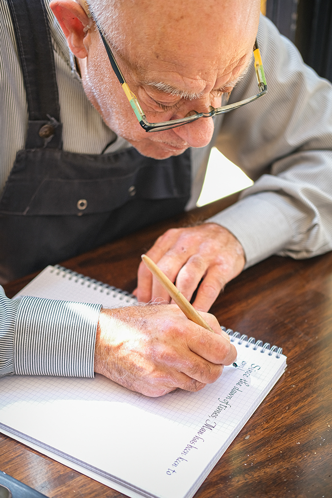 This positive energy that Bernard Sader succeeded to generate, the artist owes it to his “manual intelligence”, as he likes to describe it. Graduated in Business Management, Sader worked for a long time in the marketing field in Middle Eastern countries … “Anti-consumer by nature (I wouldn’t go so far as to say that I regret my master’s degree in Business Management), I consider that life has given me the opportunity and the chance to escape this world! Since then, and for about twenty years now, I have devoted myself to what I love”, says the craftsman… Guided by his heart and by his fascination for illumination and ancient manuscripts, especially those dating from medieval times, his hands know how to skilfully manipulate quills, pens, papers, colours…